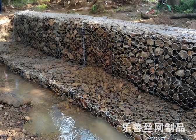 石笼网箱是金属线材编织的重型六角网制作成的箱型网笼,使用的金属线径是根据六角形的大小而不同。因此有称之为“六角网、六角笼或者石笼网网箱”,欧洲也叫格宾网。在施工现场经石头填充,构成具有柔性、透水性及整体性的结构,如挡墙、河道衬砌、堰等支挡的防冲蚀工程。